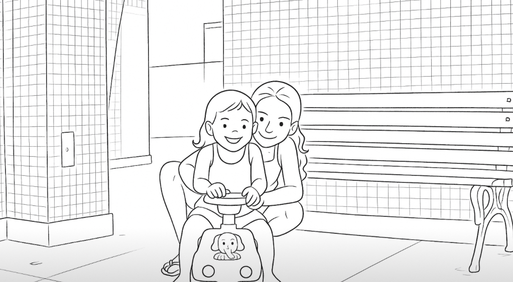 Eu estava na casa dela, pela varanda vi o carro estacionando e ela saindo com seu marido, que gentilmente a colocou na cadeira de rodas.